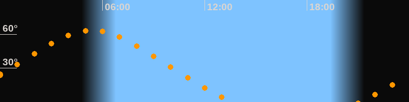 Höchster Stand (Kulmination)05:22 Uhr (h = 63,4°)