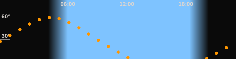 Höchster Stand (Kulmination)05:07 Uhr (h = 63,4°)