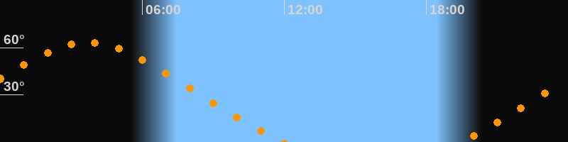 Aufgang19:22 Uhr im Nordosten (αAz = 48,9°)