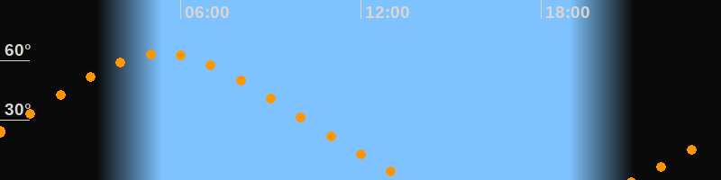 Höchster Stand (Kulmination)05:23 Uhr (h = 63,4°)