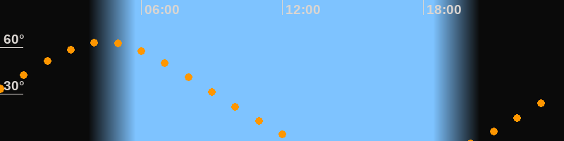 Höchster Stand (Kulmination)04:25 Uhr (h = 63,4°)