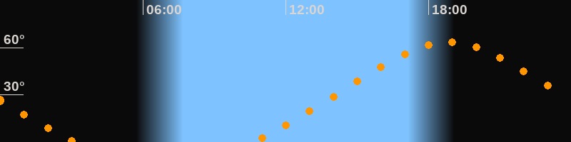 Höchster Stand (Kulmination)18:51 Uhr (h = 63,4°)