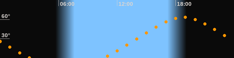 Höchster Stand (Kulmination)18:47 Uhr (h = 63,4°)