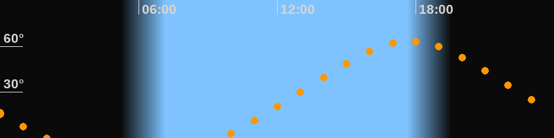 Höchster Stand (Kulmination)17:44 Uhr (h = 63,4°)