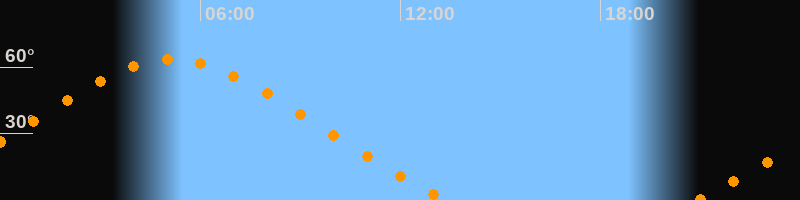Höchster Stand (Kulmination)05:10 Uhr (h = 63,4°)