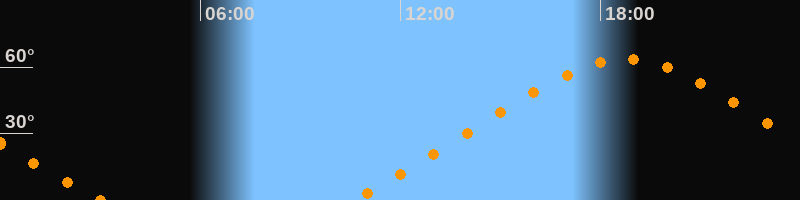 Höchster Stand (Kulmination)18:45 Uhr (h = 63,4°)