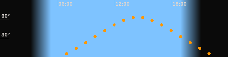 Höchster Stand (Kulmination)14:29 Uhr (h = 63,4°)