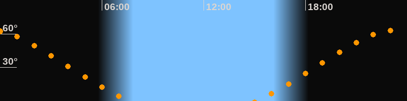 Höchster Stand (Kulmination)23:18 Uhr (h = 63,4°)