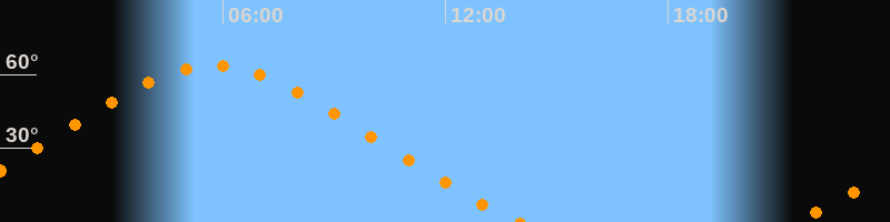 Höchster Stand (Kulmination)05:44 Uhr (h = 63,4°)