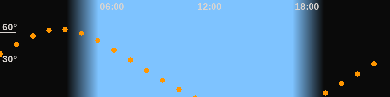 Aufgang19:23 Uhr im Nordosten (αAz = 48,9°)