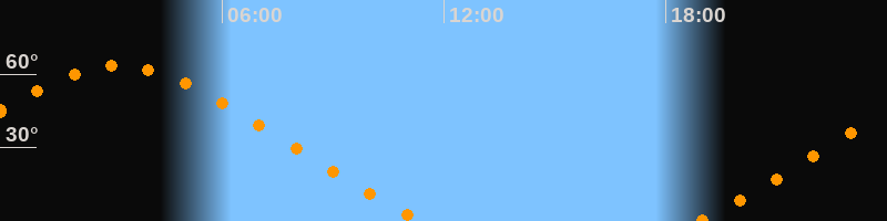 Höchster Stand (Kulmination)03:11 Uhr (h = 63,4°)