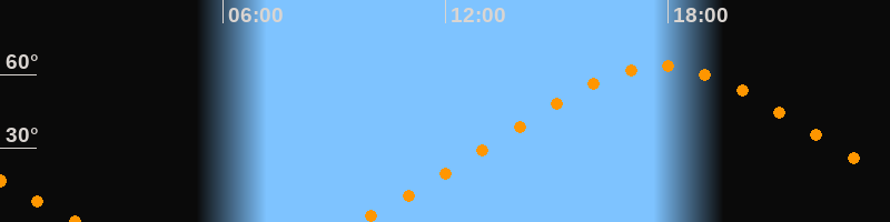 Höchster Stand (Kulmination)17:49 Uhr (h = 63,4°)