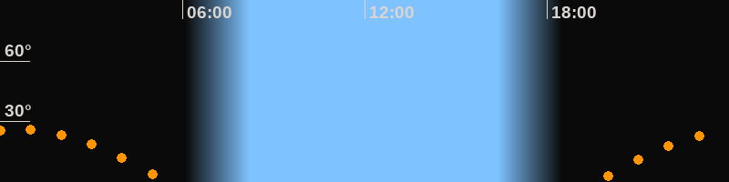 Höchster Stand (Kulmination)00:32 Uhr (h = 26,1°)