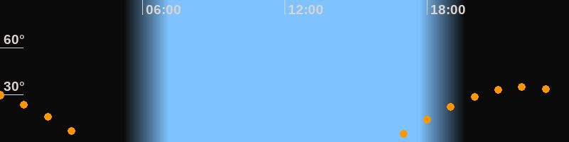 Untergang03:49 Uhr im Westen (αAz = 264°)
