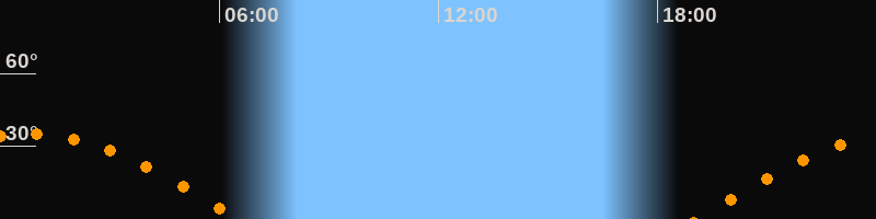 Höchster Stand (Kulmination)00:46 Uhr (h = 35°)
