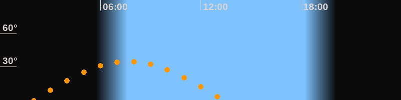 Höchster Stand (Kulmination)07:40 Uhr (h = 35°)