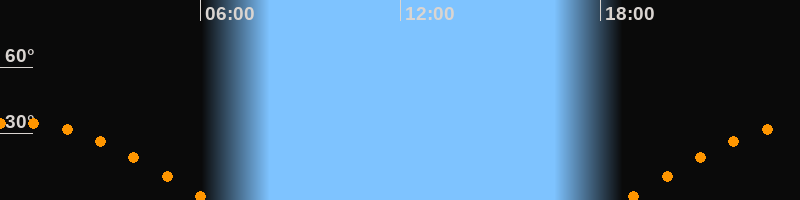 Höchster Stand (Kulmination)00:28 Uhr (h = 35°)