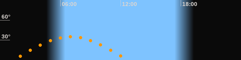 Höchster Stand (Kulmination)07:00 Uhr (h = 35°)