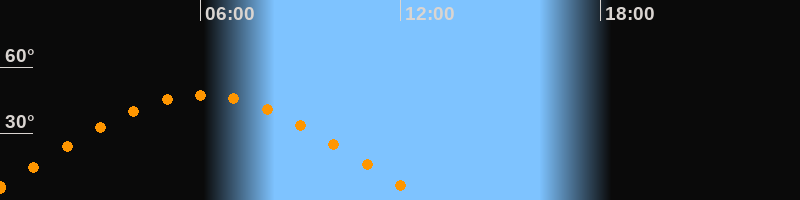 | Höchster Stand (Kulmination) | 06:03 Uhr (h = 47,3°) |