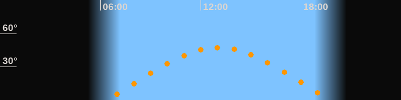 | Höchster Stand (Kulmination) | 13:03 Uhr (h = 47,3°) |