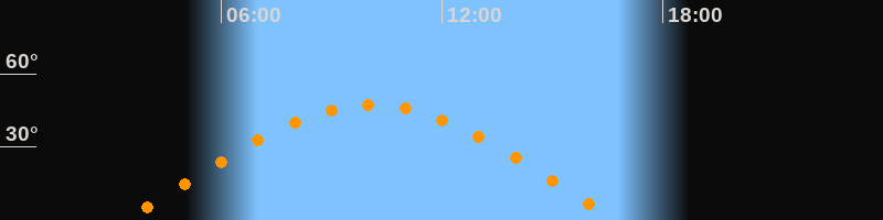 | Höchster Stand (Kulmination) | 10:05 Uhr (h = 47,3°) |