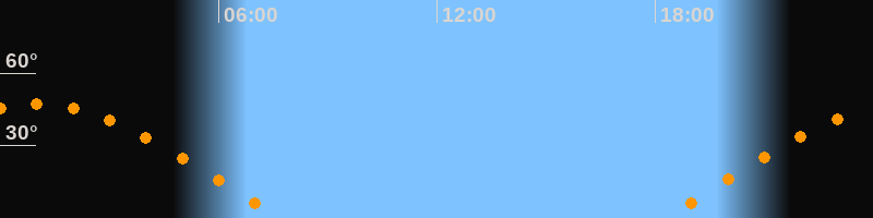 | Aufgang | 18:14 Uhr im Osten (αAz = 76,6°) |