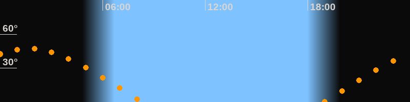 | Aufgang | 18:53 Uhr im Osten (αAz = 76,6°) |