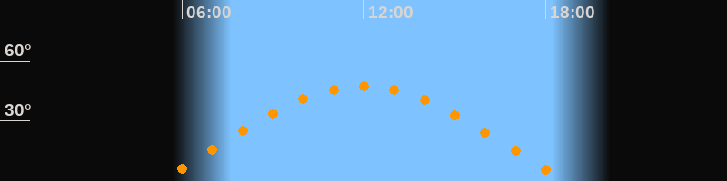 | Höchster Stand (Kulmination) | 11:57 Uhr (h = 47,3°) |