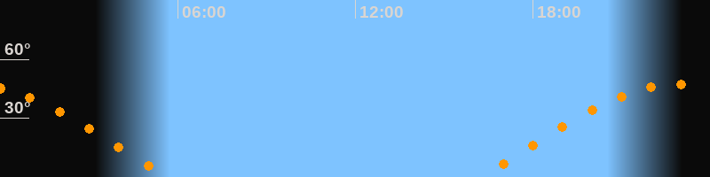 | Aufgang | 16:13 Uhr im Osten (αAz = 76,6°) |