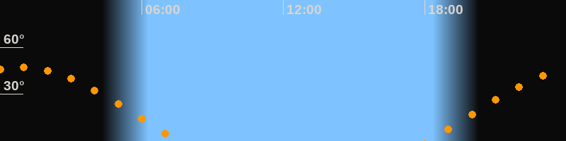 | Aufgang | 18:07 Uhr im Osten (αAz = 76,6°) |