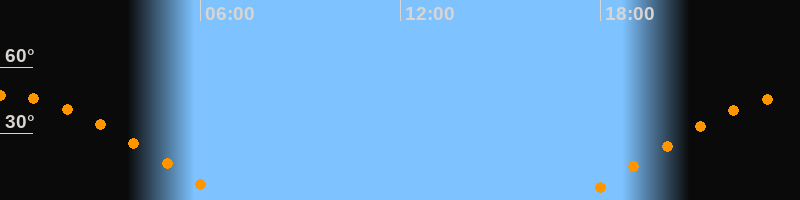 | Aufgang | 17:19 Uhr im Osten (αAz = 76,6°) |