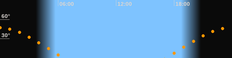 | Aufgang | 17:08 Uhr im Osten (αAz = 76,6°) |