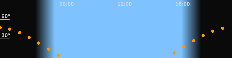 | Aufgang | 17:04 Uhr im Osten (αAz = 76,6°) |