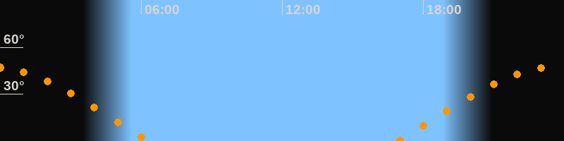 | Untergang | 06:20 Uhr im Westen (αAz = 283,4°) |