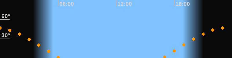 | Untergang | 06:12 Uhr im Westen (αAz = 283,4°) |