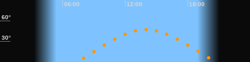 | Höchster Stand (Kulmination) | 14:00 Uhr (h = 47,3°) |