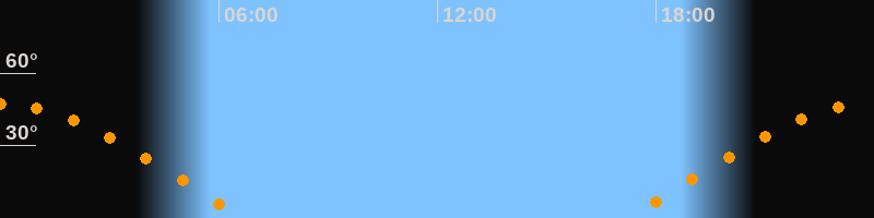 | Aufgang | 17:13 Uhr im Osten (αAz = 76,6°) |