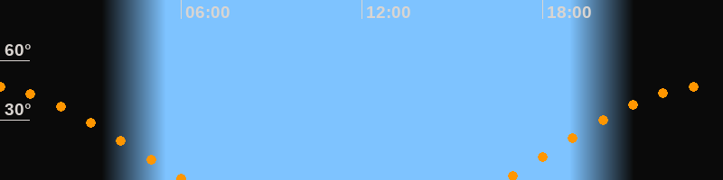 | Aufgang | 16:42 Uhr im Osten (αAz = 76,6°) |