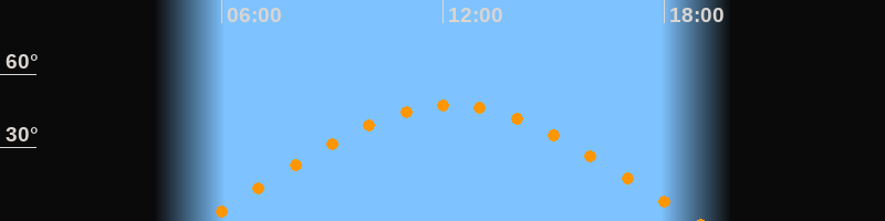 | Höchster Stand (Kulmination) | 12:12 Uhr (h = 47,3°) |