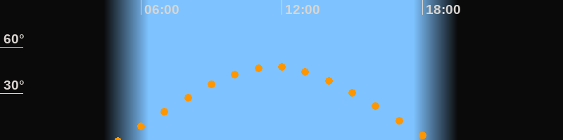 | Höchster Stand (Kulmination) | 11:40 Uhr (h = 47,3°) |