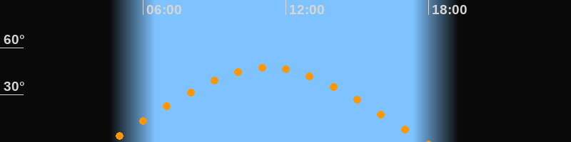 | Höchster Stand (Kulmination) | 11:13 Uhr (h = 47,3°) |