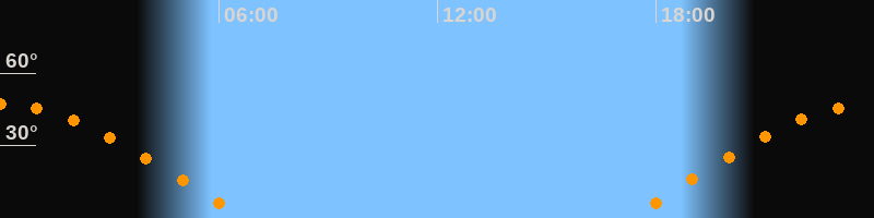 | Aufgang | 17:14 Uhr im Osten (αAz = 76,6°) |