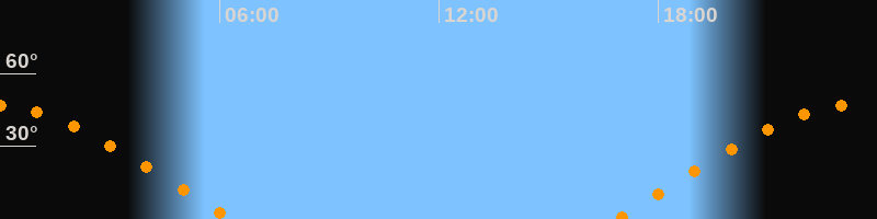 | Untergang | 06:19 Uhr im Westen (αAz = 283,4°) |
