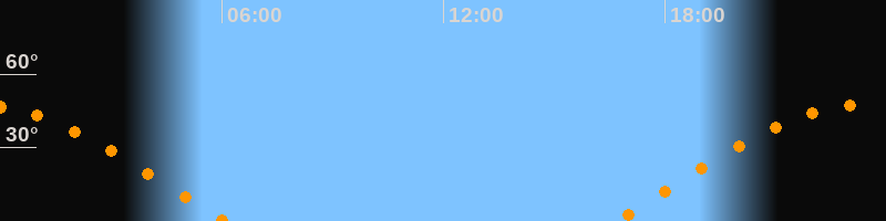 | Untergang | 06:07 Uhr im Westen (αAz = 283,4°) |