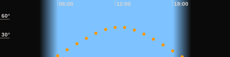 | Höchster Stand (Kulmination) | 12:25 Uhr (h = 47,3°) |