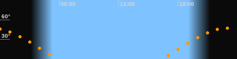 | Aufgang | 16:21 Uhr im Osten (αAz = 76,6°) |