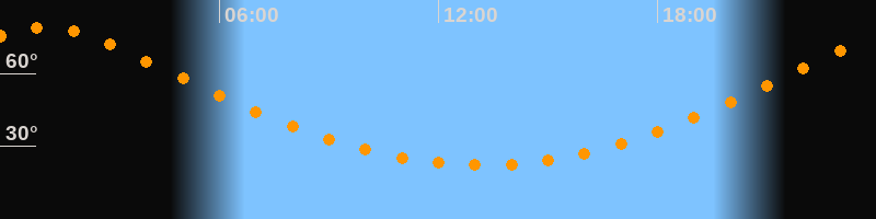 Höchster Stand (Kulmination)01:10 Uhr (h = 79,1°)