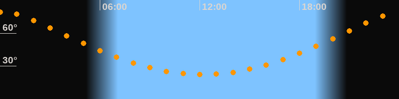 Höchster Stand (Kulmination)00:09 Uhr (h = 79,1°)