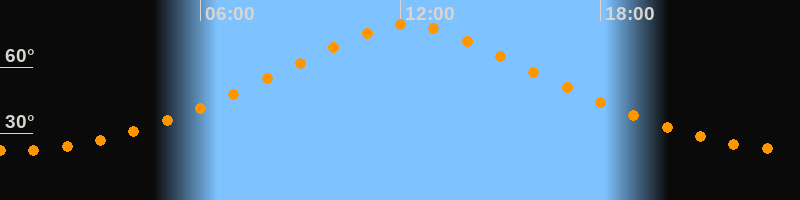 Höchster Stand (Kulmination)12:12 Uhr (h = 79,1°)