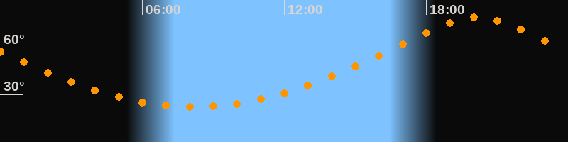Höchster Stand (Kulmination)20:09 Uhr (h = 79,1°)